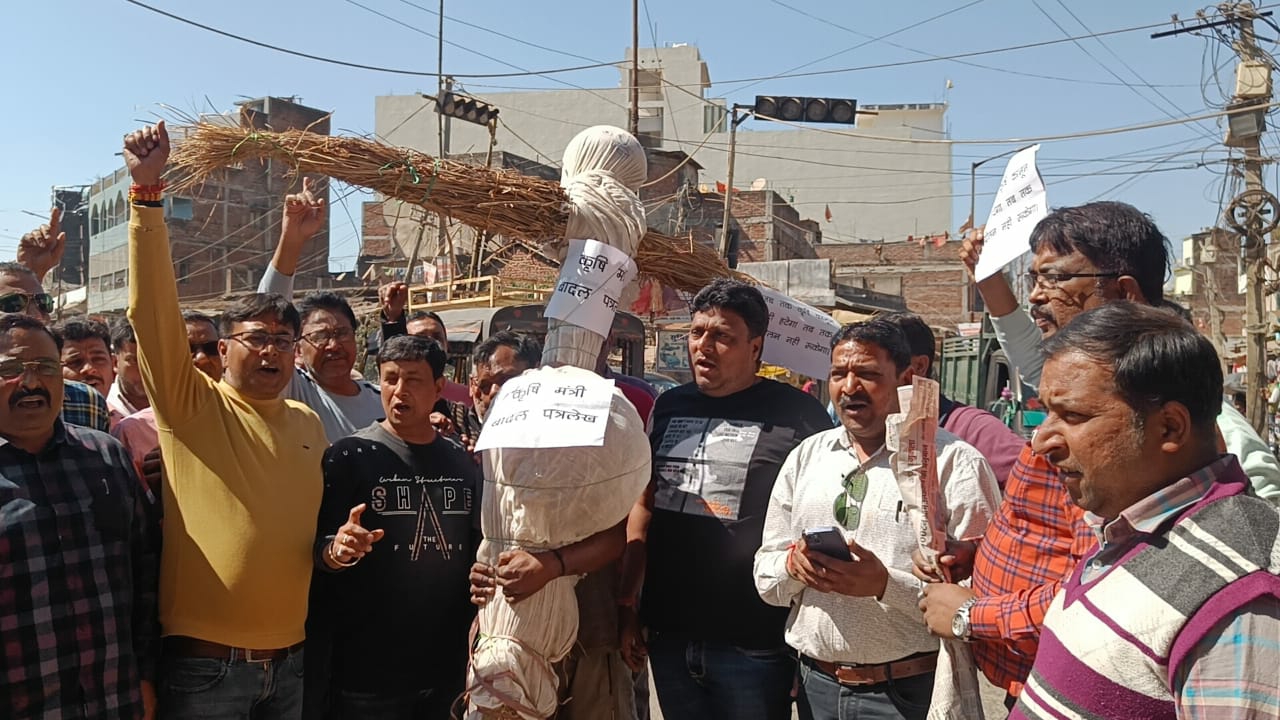 टीम एबीएन, लोहरदगा। झारखण्ड सरकार द्वारा पारित कृषि उपज एवं पशुधन विपणन विधेयक 2022 के खिलाफ पूरे झारखण्ड राज्य के व्यापारी एकजुट हो चुके हैं एवं आज झारखण्ड के सभी जिलों में कृषि मंत्री का पुतला दहन किया जा रहा है। इसी कड़ी में लोहरदगा नगर क्षेत्र के बरवा टोली चौक में कृषि मंत्री बादल पत्रलेख का पुतला दहन किया गया।