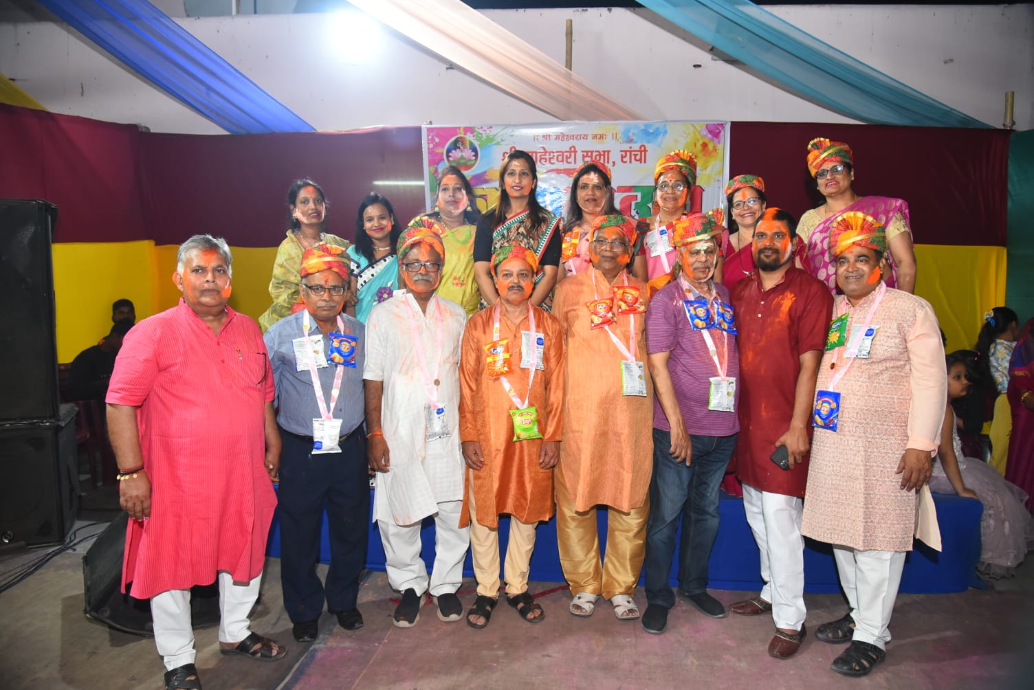 यही सोच के साथ रांची महेश्वरी सभा हर साल समाज बंधुओं के लिए फागुन होली महोत्सव का आयोजन करते हैं। संध्या 5:30 बजे से शुरू हुए कार्यक्रम में समाज के प्रदेश अध्यक्ष राजकुमार मारू, प्रदेश कोषाध्यक्ष शिवशंकर साबू, रांची सभा अध्यक्ष किशन कुमार साबू, सचिव नरेंद्र लाखोटिया, प्रदेश महिला महासचिव संगीता चितलांगिया, प्रदेश उपाध्यक्षा अर्चना साबू, महिला अध्यक्षा भारती चितलांगिया, सचिव विमला माहेश्वरी, युवा अध्यक्ष विनय मंत्री, सचिव हेमंत माहेश्वरी सहित जुगल किशोर मारु, उमाशंकर साबू, महाबीर प्रसाद सोमानी, पवन मंत्री, अशोक साबू, उषा मंत्री, बीणा साबू, मीरा परवाल आदि को व्यंगात्मक टैगलाइन दे सब्जियों की माला पहना होलीयाना सम्मान एवं स्वागत किया गया।