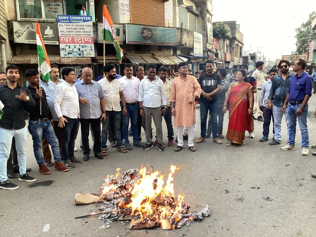 टीम एबीएन, लोहरदगा। आज दिनांक 20 जुलाई 2023 को झारखंड प्रदेश कांग्रेस कमेटी के अध्यक्ष राजेश ठाकुर के निर्देशानुसार लोहरदगा जिला कांग्रेस कमेटी के अध्यक्ष सुखेर भगत के नेतृत्व में संध्या 5 बजे आदिवासी महिलाओं के साथ मणिपुर में हुई शर्मनाक घटना के विरोध में प्रधानमंत्री नरेंद्र मोदी एवं गृह मंत्री अमित शाह का पुतला जलाकर जोरदार विरोध प्रदर्शन कर केंद्र सरकार के अमानवीय चेहरे का पर्दाफाश किया गया।