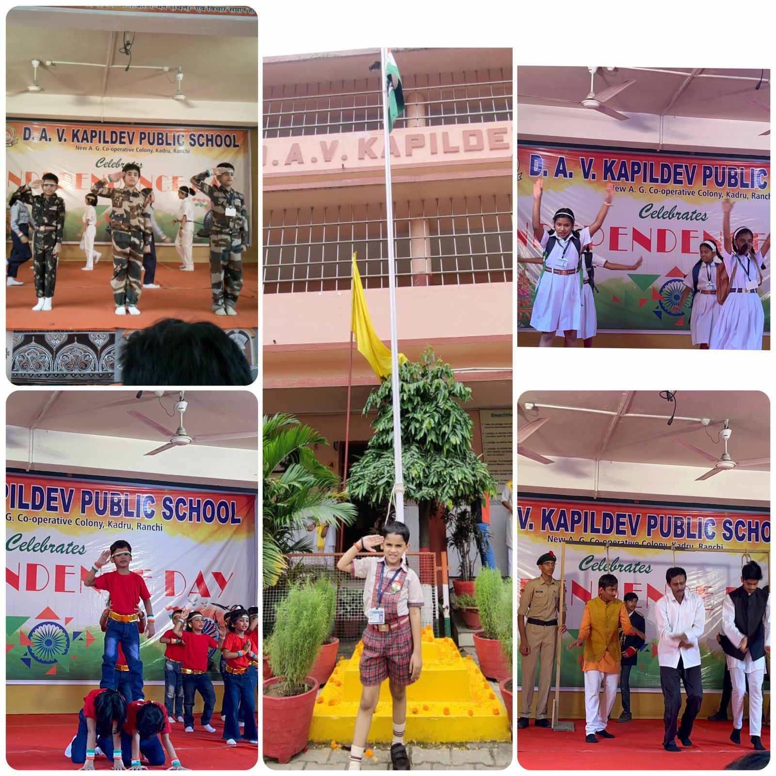 उसके बाद विद्यालय में रंगारंग कार्यक्रम शुरू हुए। बच्चों ने स्वागत गीत, वाद्य संगीत, भाषण तथा आजाद आजादी नामक एक नृत्य नाटिका प्रस्तुत किया, जिसका निर्देशन विद्यालय की शिक्षिका काकोली दत्ता ने किया। इस नाटिका में बच्चों ने वर्तमान सामाजिक वातावरण का चित्रण किया जिसमें विशेष रूप से देशभक्ति, सैनिकों की कुर्बानी, खुदी नाम बस का देश के प्रति जज्बा और महिला शोषण को दिखाया गया था।