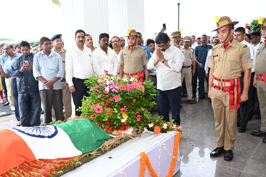 टीम एबीएन, रांची। मुख्यमंत्री श्री हेमन्त सोरेन आज झारखंड हाई कोर्ट परिसर पहुंचकर झारखंड उच्च न्यायालय के दिवंगत न्यायाधीश श्री कैलाश प्रसाद देव के पार्थिव शरीर पर पुष्पचक्र अर्पित कर उन्हें भावभीनी श्रद्धांजलि दी।