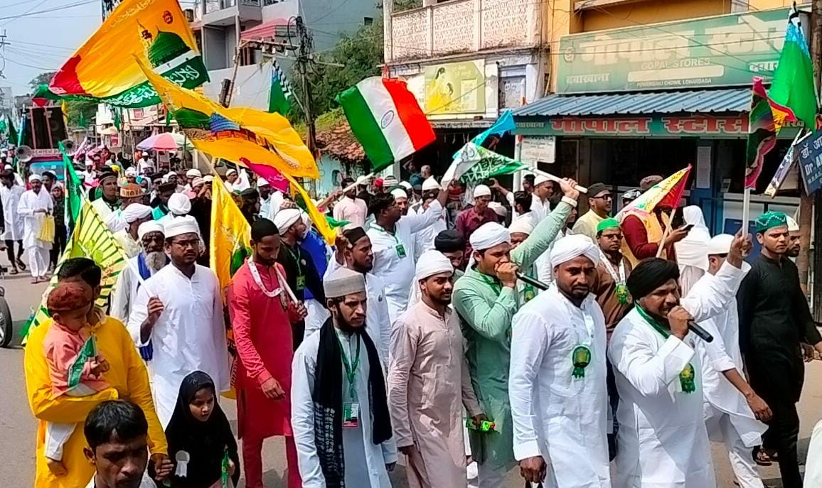 हरे रंगों के परचम और खुबसूरत रंग-बिरंगे पताके हाथों में लिए जनसैलाब के रूप में मुस्लिम समुदाय स्थानीय जामा मस्जिद के समीप से होते हुए बड़ा तालाब, बगडू रोड़, तैगी नगर, अमला टोली, सोमवार बाजार, पावरगंज, बाबा मठ, न्यू रोड, महात्मा गांधी पथ, गुदरी बाजार, शास्त्री चौक, तेतर तर, थाना रोड समेत विभिन्न मार्गों से गुजरते हुए पुन: जामा मस्जिद के पास पहुंचे।