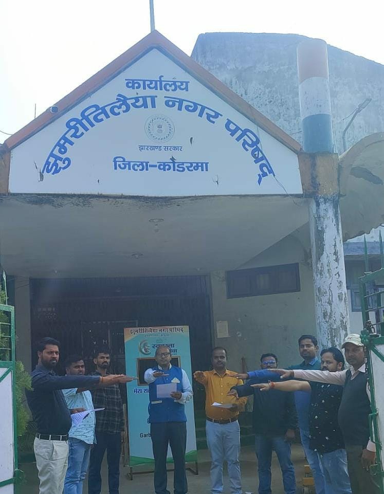 टीम एबीएन, झुमरी तिलैया। नगर परिषद कार्यालय परिसर में संविधान दिवस पर रविवार पूर्वाह्न 11 बजे शपथ ग्रहण समारोह का आयोजन किया गया। इसमें नगर प्रबंधक डा. अरविंद मोदी ने उपस्थित पदाधिकारियों व कर्मियों को शपथग्रहण कराया। इस मौके पर नगर परिषद झुमरी तिलैया प्रशासक हर्षवर्धन ने कहा कि संविधान की तैयारी के लिए बाबा साहेब डा. भीमराव अंबेडकर ने प्रारूप समिति का गठन किया था।