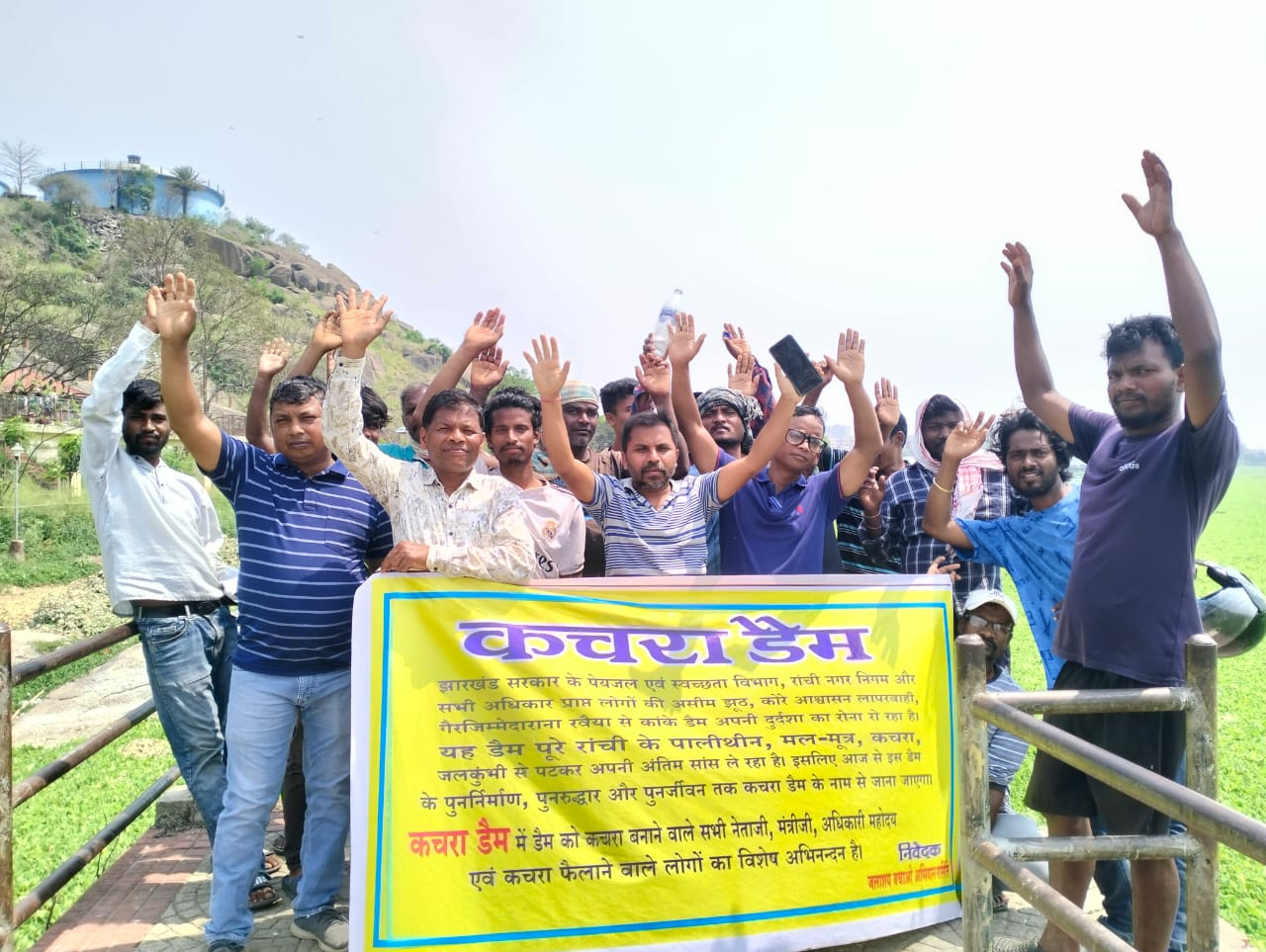 प्रदर्शन का नेतृत्व करते हुए संयोजक अमृतेश पाठक ने कहा कि जिस तरह से डैम में पूरे रांची का कचरा, पालीथीन मल-मूत्र और जलकुंभी भर गया है और इसका पानी जिस तरह दिखाई दे रहा है उसको देखते हुए इसे कचरा डैम कहना ही युक्तिसंगत है। उन्होंने पेयजल एवं स्वच्छता विभाग, नगर निगम समेत सभी अधिकार प्राप्त लोगों पर आरोप लगाते हुए कहा कि जनहित से जुड़े काम में न वोट है न नोट इसलिए इस डैम को लेकर जन प्रतिनिधि से लेकर अधिकारियों तक को कोई रूचि नहीं है। यह डैम सरकारी उदासीनता और जनता के रवैए के कारण आज अंतिम सांस ले रहा है।