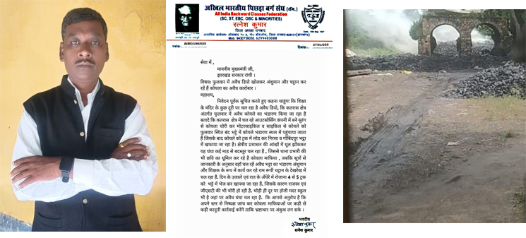 एबीएन न्यूज नेटवर्क, धनबाद/ रांची। अखिल भारतीय पिछड़ा वर्ग संघ के जिला अध्यक्ष रत्नेश कुमार ने मुख्यमंत्री को पत्र लिखकर कहा है कि शिक्षा के मंदिर से कुछ दूरी पर अवैध डिपो चल रहा है। कतरास क्षेत्र अंतर्गत फुलवार में अवैध कोयले का भंडारण किया जा रहा है।