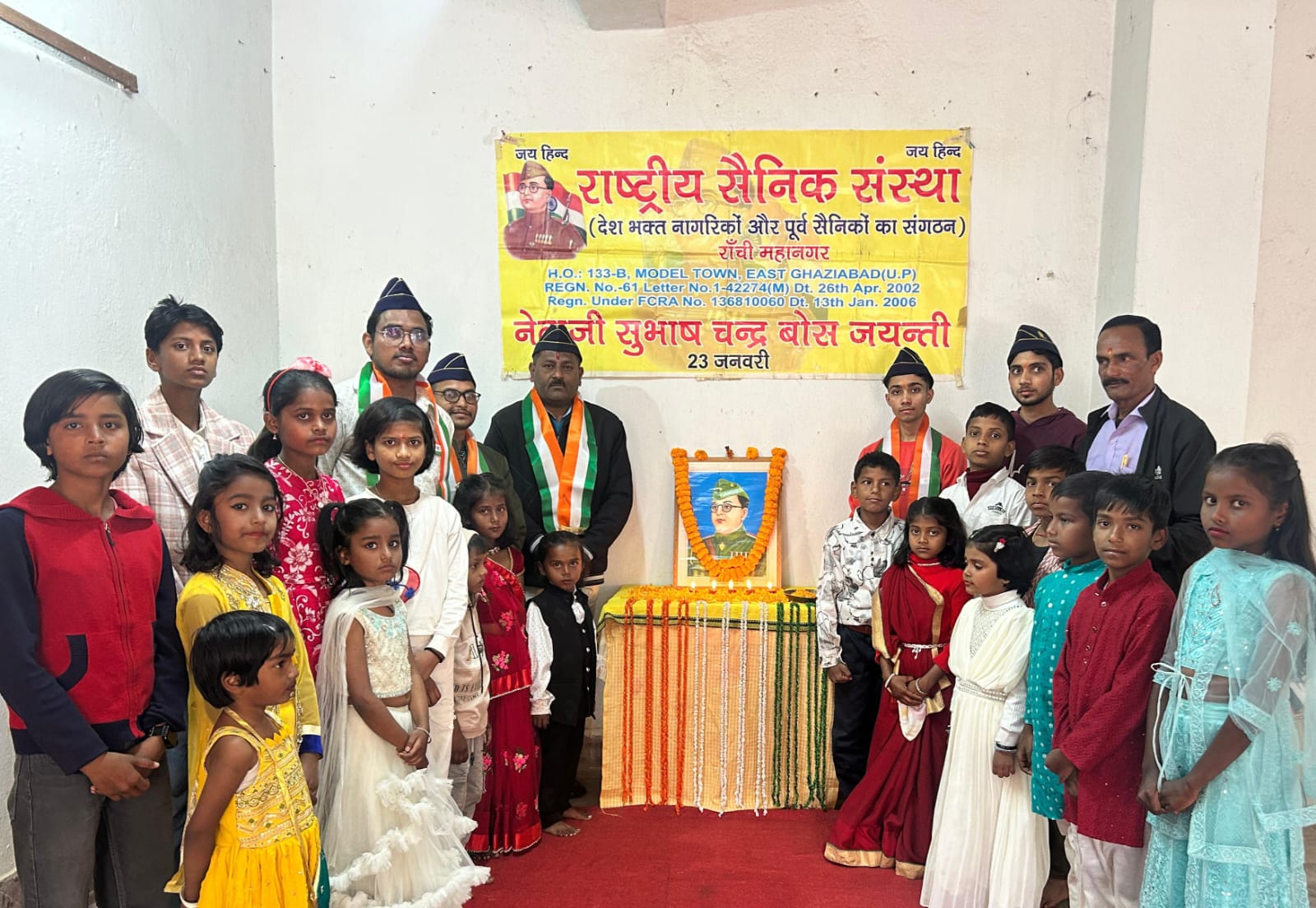 टीम एबीएन, रांची। राष्ट्रीय सैनिक संस्था रांची महानगर के तत्वावधान में आजाद हिंद फौज के संस्थापक नेताजी सुभाषचंद्र बोस जी की जयंती रांची देवी मंडप रोड हेसल सरोवर नगर रांची में मनायी गयी। मौके पर राष्ट्रीय सैनिक संस्था युवा कमांड झारखंड प्रदेश अध्यक्ष मनोज कुमार उर्फ पुटू ने नेताजी सुभाषचंद्र बोस जी के चित्र पर माल्यार्पण कर दीप प्रज्जवलित किया।