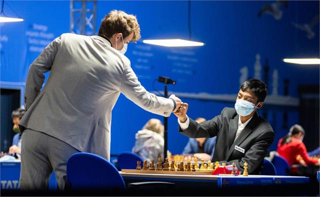 एबीएन सेंट्रल डेस्क। चैम्पियन चैस टूर 2022 के पहले टूनार्मेंट एयरथिंग्स मास्टर्स शतरंज में खेल रहे भारत के आर प्रग्गानंधा के लिए पहला दिन जितना खराब गया था दूसरा दिन उतना ही अच्छा साबित हुआ और उन्होने सबसे बड़ा उलटफेर करते हुए विश्व के नंबर एक खिलाड़ी और मौजूदा विश्व चैम्पियन नॉर्वे के मेगनस कार्लसन को पराजित कर दिया साथ ही उन्होने विश्व के नंबर 4 खिलाड़ी यूएसए के लेवोन अरोनियन पर भी जीत दर्ज की ,उन्हे दिन की एकमात्र हार अजरबैजान के ममेद्यारोव से मिली जबकि नीदरलैंड के अनीश गिरि से उन्होने बाजी ड्रॉ खेली। वैसे दूसरा दिन रूस के इयान नेपोमिन्सी के नाम रहा और उन्होने हमवतन आन्द्रे एसीपेंकों, अलेक्जेंड्रा कोस्टेनियुक और उज्बेकिस्तान के नोदिरबेक अब्दुसत्तारोव को पराजित करते हुए एकल बढ़त बना ली जबकि लेवोन अरोनियन से अंतिम राउंड हारकर चीन के डिंग लीरेन दूसरे स्थान पर सरक गए है। कनाडा के हेरिक हेनसन तीसरे स्थान पर चल रहे है। विश्व चैम्पियन मेगनस कार्लसन पांचवें तो उनको हराने वाले प्रग्गानंधा अभी भी 14 वे स्थान ओर चल रहे है।
