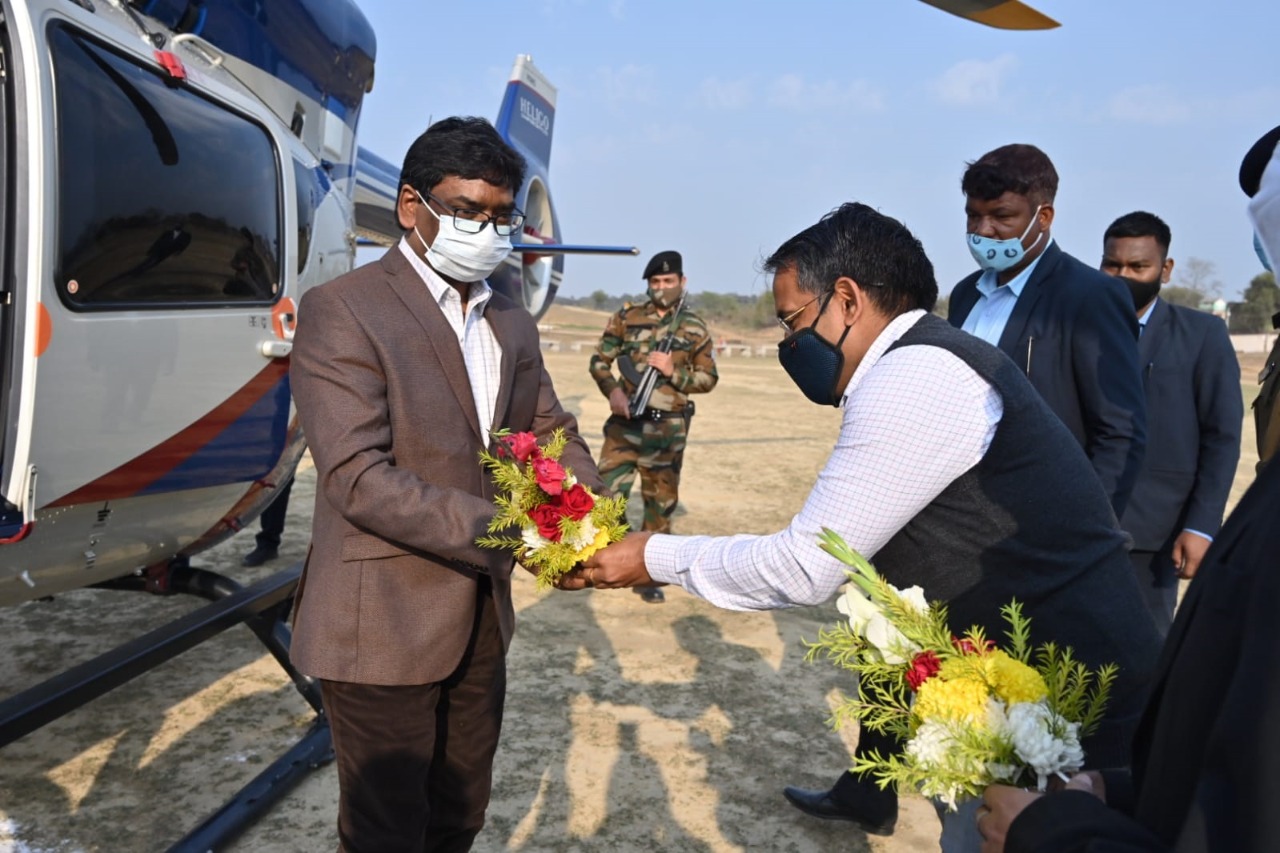 टीम एबीएन, रांची। सूबे के मुख्यमंत्री हेमंत सोरेन दो दिवसीय दौरे पर साहिबगंज पहुंचे हैं। साहिबगंज पहुंचने पर सर्वप्रथम उन्हें गार्ड ऑफ ऑनर से सम्मान किया गया। साथ ही साथ राज्य के डीजीपी खुद सुरक्षा का कमान संभालते हुए साहिबगंज पहुंच चुके हैं। इस मौके पर उन्होंने मुख्यमंत्री को पुष्पगुच्छ देकर सम्मान किया। सूबे के सीएम हेमंत सोरेन का साहिबगंज दौरा हो गया है। इसी कड़ी में सोमवार को मुख्यमंत्री हेमंत सोरेन साहिबगंज पहुंचे। प्राप्त जानकारी के अनुसार मुख्यमंत्री हेमंत सोरेन अपने बरहेट विधानसभा के कार्यकर्ताओं से रूबरू होंगे साथ ही उनकी समस्याओं से भी अवगत होंगे। इसके अलावा सीएम हेमंत सोरेन जिला में चल रही योजनाओं को लेकर भी अधिकारियों के साथ बैठक कर समीक्षा करेंगे। इसके अलावा वो क्षेत्र की विभिन्न समस्याओं से भी अवगत होंगे। मुख्यमंत्री हेमंत सोरेन रात्रि विश्राम पतना प्रखंड के अपने निजी आवास पर ही करेंगे। मुख्यमंत्री के आगमन को लेकर पूरा जिला प्रशासन पूरी तरह से रेस हो चुकी है। सीएम की सुरक्षा को लेकर खास इंतजाम किए गए हैं। बरहेट प्रखंड से लेकर बरहरवा प्रखंड तक जगह-जगह पुलिस की तैनाती की गयी है। मुख्यमंत्री हेमंत सोरेन के आगमन को लेकर बरहड़वा रेलवे स्टेशन से तलबड़िया फुटबॉल मैदान तक सुरक्षा का चाक चौबंद व्यवस्था की गयी थी। रास्ते में जगह जगह और विभिन्न चौक चौराहों पर पुलिस बल तैनात किया गया था। हेलीपैड स्थल पर खुद डीआईजी सुरक्षा व्यवस्था की कमान संभाले हुए दिखे। पतना धर्मपुर स्थित मुख्यमंत्री आवास के सामने बने पंडाल में मुख्यमंत्री के आगमन को लेकर विधायक सीएम प्रतिनिधि पंकज मिश्रा और सांसद विजय हांसदा कमान संभाले हुए देखे गए।
