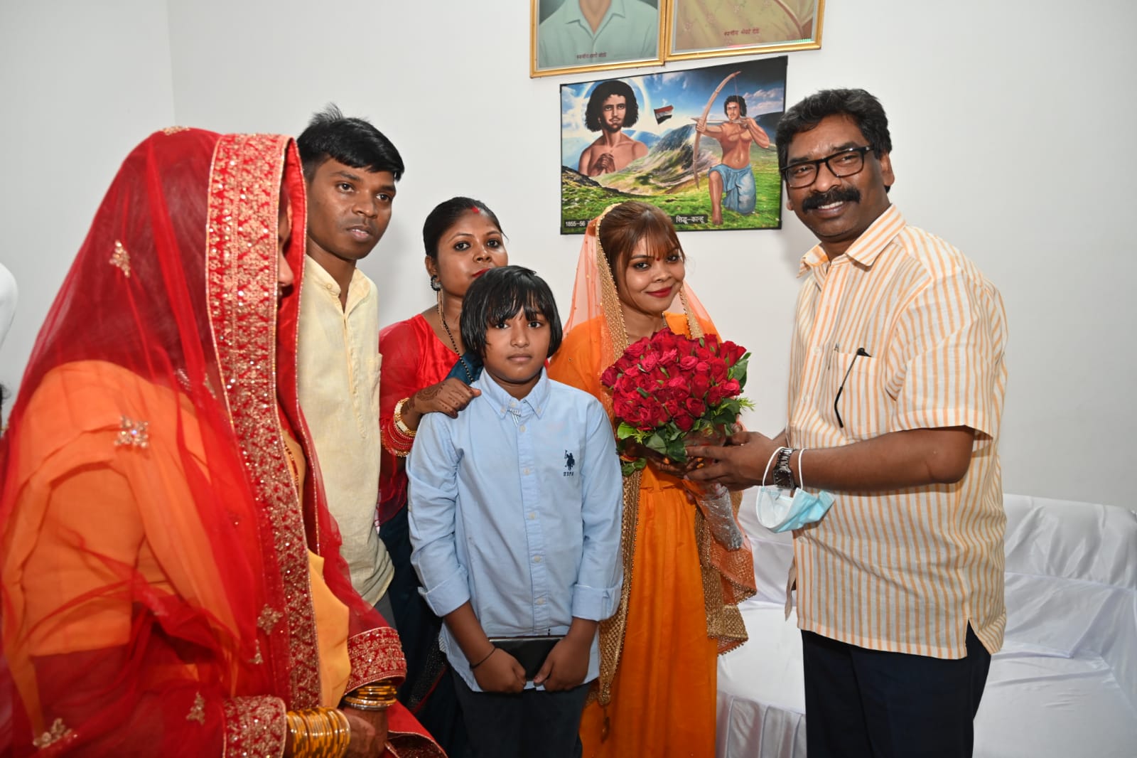 टीम एबीएन, हेसागढ़ा, रामगढ़। मुख्यमंत्री हेमन्त सोरेन आज झामुमो के वरीय नेता फागु बेसरा की सुपुत्री के विवाह एवं उनके सुपुत्र के विवाह रिसेप्शन कार्यक्रम में सम्मिलित होने हेतु रामगढ़ जिला के हेसागढ़ा स्थित उनके आवास पर पहुंचे। मौके पर मुख्यमंत्री ने फागु बेसरा की सुपुत्री चांदमुनि बेसरा को सुखद दांपत्य जीवन की शुभकामनाएं एवं आशीर्वाद दिया। मौके पर मुख्यमंत्री श्री हेमन्त सोरेन ने फागु बेसरा के सुपुत्र राजेश बेसरा एवं पुत्रवधू शीला हेंब्रम को सुखद दांपत्य जीवन की शुभकामनाएं दी तथा नवविवाहित जोड़े को आशीर्वाद दिया। मौके पर फागु बेसरा के परिवार के अन्य सदस्य एवं रिश्तेदार भी उपस्थित थे। इससे पहले जोरा करम, बीस माइल फुटबॉल मैदान हेसागढ़ा स्थित अस्थायी हेलीपैड पर मुख्यमंत्री हेमन्त सोरेन का आगमन होते ही सामाजिक कार्यकर्ताओं ने बुके देकर उनका स्वागत किया। मौके पर झामुमो रामगढ़ के जिलाध्यक्ष विनोद किस्कु, सामाजिक कार्यकर्ता राजकुमार महतो, विनोद महतो, आलम अंसारी, राजेश टुडू सहित अन्य लोग उपस्थित थे।