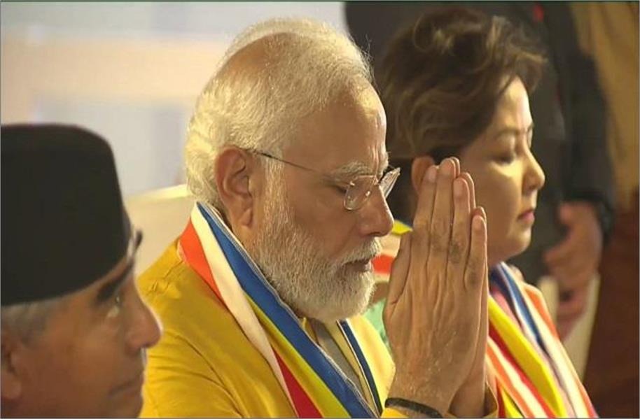 एबीएन सेंट्रल डेस्क। प्रधानमंत्री नरेंद्र मोदी बुद्ध पूर्णिमा के अवसर पर भगवान बुद्ध की जन्मभूमि लुंबिनी पहुंचे जहां नेपाल के प्रधानमंत्री शेर बहादुर देऊबा ने उनका भव्य स्वागत किया। पीएम मोदी लुंबिनी में बनाए गए विशेष हैलीपेड पर भारतीय वायुसेना के हेलीकॉप्टर से पहुंचे। हेलीपैड पर नेपाली प्रधानमंत्री श्री देऊबा एवं उनकी पत्नी मौजूद थीं। वैशाख बुद्ध पूर्णिमा पर पीली पोशाक पहने पीएम मोदी हेलीपैड से नेपाली प्रधानमंत्री के साथ सीधे मायादेवी के मंदिर में दर्शन पूजन के लिए रवाना हो गए। यह मंदिर भगवान बुद्ध का जन्मस्थान है। प्रधानमंत्री वहां भगवान बुद्ध की 2566वीं जयंती पर आयोजित एक विशेष पूजा में भाग लेंगे। पीएम मोदी अपने विशेष विमान से भगवान बुद्ध के परिनिर्वाण स्थल कुशीनगर के अंतर्राष्ट्रीय हवाई अड्डे पर पहुंचे जहां उत्तर प्रदेश के मुख्य सचिव दुर्गाशंकर मिश्रा ने हवाई अड्डे पर प्रधानमंत्री मोदी की अगवानी की। एयरपोर्ट से वह भगवान बुद्ध की जन्मस्थली नेपाल स्थित लुंबनी के लिये भारतीय वायुसेना हेलीकॉप्टर द्वारा रवाना हुए। पीएम मोदी के विमान के लुंबिनी के समीप भैरवा में चीन द्वारा निर्मित अंतर्राष्ट्रीय हवाईअड्डे पर नहीं उतरने और उनके हैलीकॉप्टर से सीधे लुम्बिनी जाने को लेकर कई प्रकार की चर्चाएं थीं लेकिन भारत सरकार ने इसे सुरक्षा संबंधी मामला बताकर कोई भी टिप्पणी करने से इनकार कर दिया है।