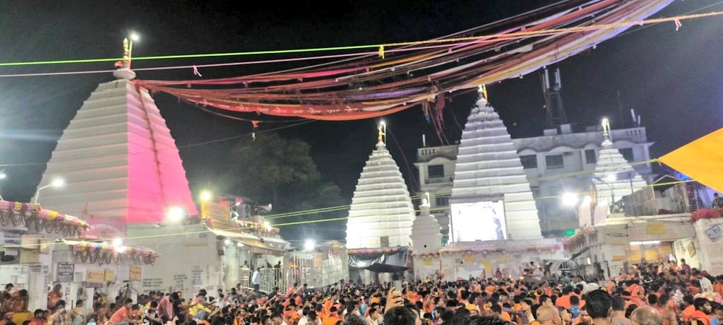 टीम अवबन, देवघर/रांची। सावन की तीसरी सोमवारी को लेकर झारखंड के देवघर स्थित बाबा धाम मंदिर में आस्था का जनसैलाब उमड़ पड़ा है। आज अहले सुबह 3:45 बजे हुई सरकारी पूजा के बाद मंदिर का पट आम श्रद्धालुओं के लिए खोला गया। सरकारी पूजा के दौरान प्रधान पुरोहित ने षोडशोपचार पूजा से बाबा की विशेष पूजा अर्चना की। आज जिला प्रशासन और पुलिस की मुस्तैदी और नई रणनीति काफी काम आई। पहली बार ऐसा हुआ है कि सावन की सोमवार को कतार कुमैठा स्टेडियम तक नहीं पहुंची। नई रणनीति काफी काम आई और कतार को नंदन पहाड़ तक सीमित रखा गया। देवघर एसपी सुभाष चंद्र जाट और देवघर डीसी मंजूनाथ भजंत्रि की रणनीति ने भीड़ को लंबी दूरी तक नहीं जाने दिया, जिससे श्रद्धालुओं को काफी सुविधा हो रही है और उन्हें लंबी दूरी कतार के लिए तय नहीं करना पड़ रहा है। दूसरी तरफ रविवार को देर रात तकरीबन 11 बजे तक जल अर्पण कराया गया जिससे भीड़ काफी हद तक काबू पाने में सफलता मिल गई। देवघर जिला प्रशासन का अनुमान है कि सावन की तीसरी सोमवारी को तकरीबन तीन लाख के करीब भक्त जल अर्पण करेंगे जो कि दूसरी सोमवारी से ज्यादा होगी। लेकिन बेहतर प्रबंधन के कारण भक्तों की कतार को सीमित रखा गया है और जल अर्पण करने की गति को काफी तेज रखा गया है। इसके कारण श्रद्धालुओं को भी सुविधा मिल रही है। देवघर बाबा मंदिर में जल अर्पण लगातार जारी है और इसके लिए भी लंबी-लंबी कतार लग रही है। कुल मिलाकर तीसरी सोमवारी को बेहतर प्रबंधन की बदौलत जिला प्रशासन ने अब तक जनसैलाब को कंट्रोल करने में सफलता पाई है।