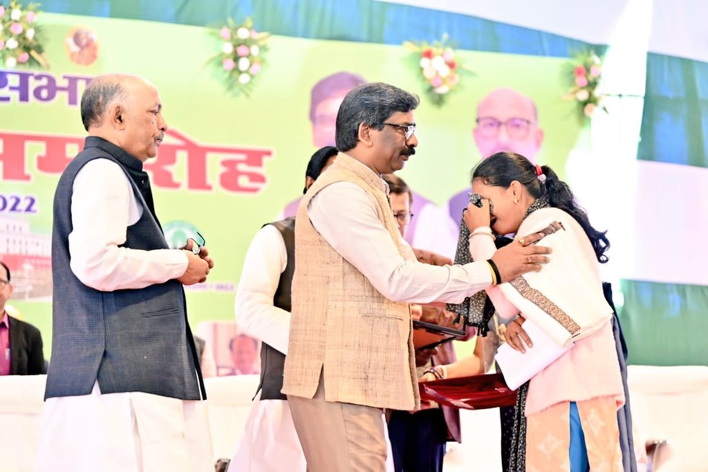 टीम एबीएन, रांची। झारखंड विधानसभा के 22वीं वर्षगांठ के अवसर पर शहीदों और शूरवीरों को सम्मानित किया गया। इस दौरान कई लोगों की आंखें नम हो गयी शहीदों के परिजनों ने मंच पर मुख्यमंत्री से अपने दर्द साझा किये। एक वक्त ऐसा आया जब एक शहीद की पत्नी के रोने की वजह से माहौल गमगीन हो गया। स्पीकर रवींद्रनाथ महतो भी खुद को नहीं रोक पाये और उनकी आंखें छलक आईं।