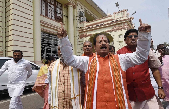 कार्यवाही स्थगित होने के बाद भाजपा ने सत्ता पक्ष पर कई गंभीर आरोप लगाये। सदन के बाहर मीडिया से बात करते हुए नेता प्रतिपक्ष विजय सिन्हा ने कहा कि माइक तोड़ने की बात गलत है। सत्ता पक्ष के विधायकों ने हमारे दलित विधायक को गाली दी, धमकी दी। उन्होंने कहा कि सरकार का काम सदन चलाना है। तो सत्ता पक्ष के विधायक वेल में क्यों आयें। उन्होंने कहा कि राज्य में जंगलराज है। अपराधियों की सरकार भ्रमित करने का काम कर रही है, लेकिन जनता सब देख रही है।