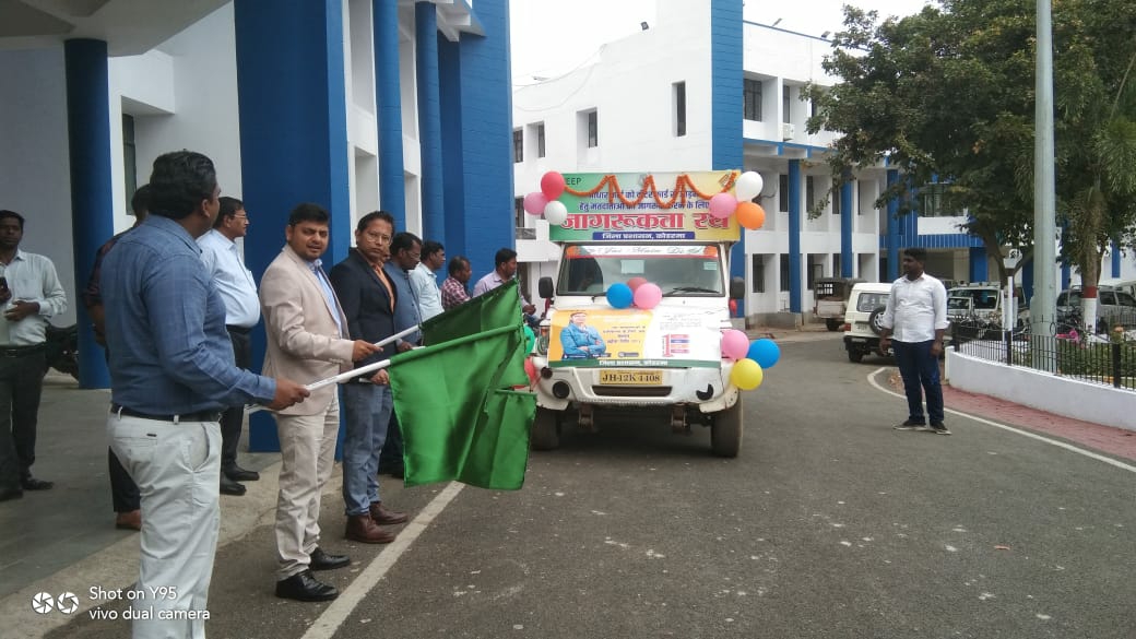 उपायुक्त आदित्य रंजन, वन प्रमंडल पदाधिकारी सूरज कुमार सिंह, अपर समाहर्ता अनिल तिर्की, उप निर्वाचन पदाधिकारी श्री जय पाल सोय ने संयुक्त रूप से जागरूकता रथ को हरी झंडी दिखाकर रवाना किया। मौके पर उपायुक्त आदित्य रंजन ने कहा कि यह जागरूकता रथ जिले के विभिन्न प्रखंडों में जाकर मतदाताओं को आधार कार्ड को वोटर कार्ड से जोड़ने हेतु जागरूक करेगी।