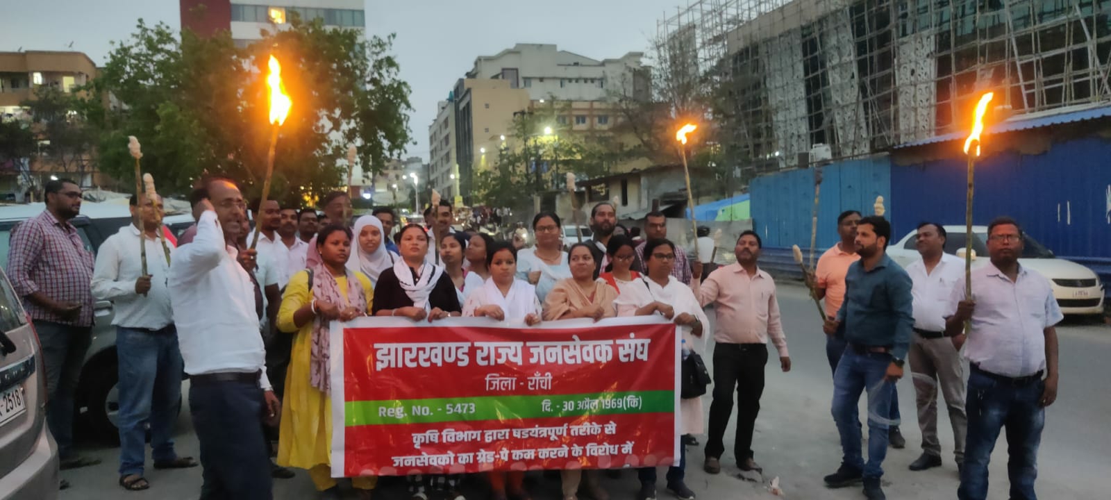 टीम एबीएन, रांची। झारखंड सरकार के कृषि विभाग द्वारा जनसेवकों का ग्रेड पे 2400 से घटाकर 2000 करने के विरोध में आज रांची जिला के सभी जनसेवकों ने जनसेवक संघ रांची के अध्यक्ष महिमा इरूस लकड़ा की अगुवाई में जयपाल सिंह स्टेडियम रांची से अल्बर्ट एक्का चौक तक मशाल जुलूस निकाला।