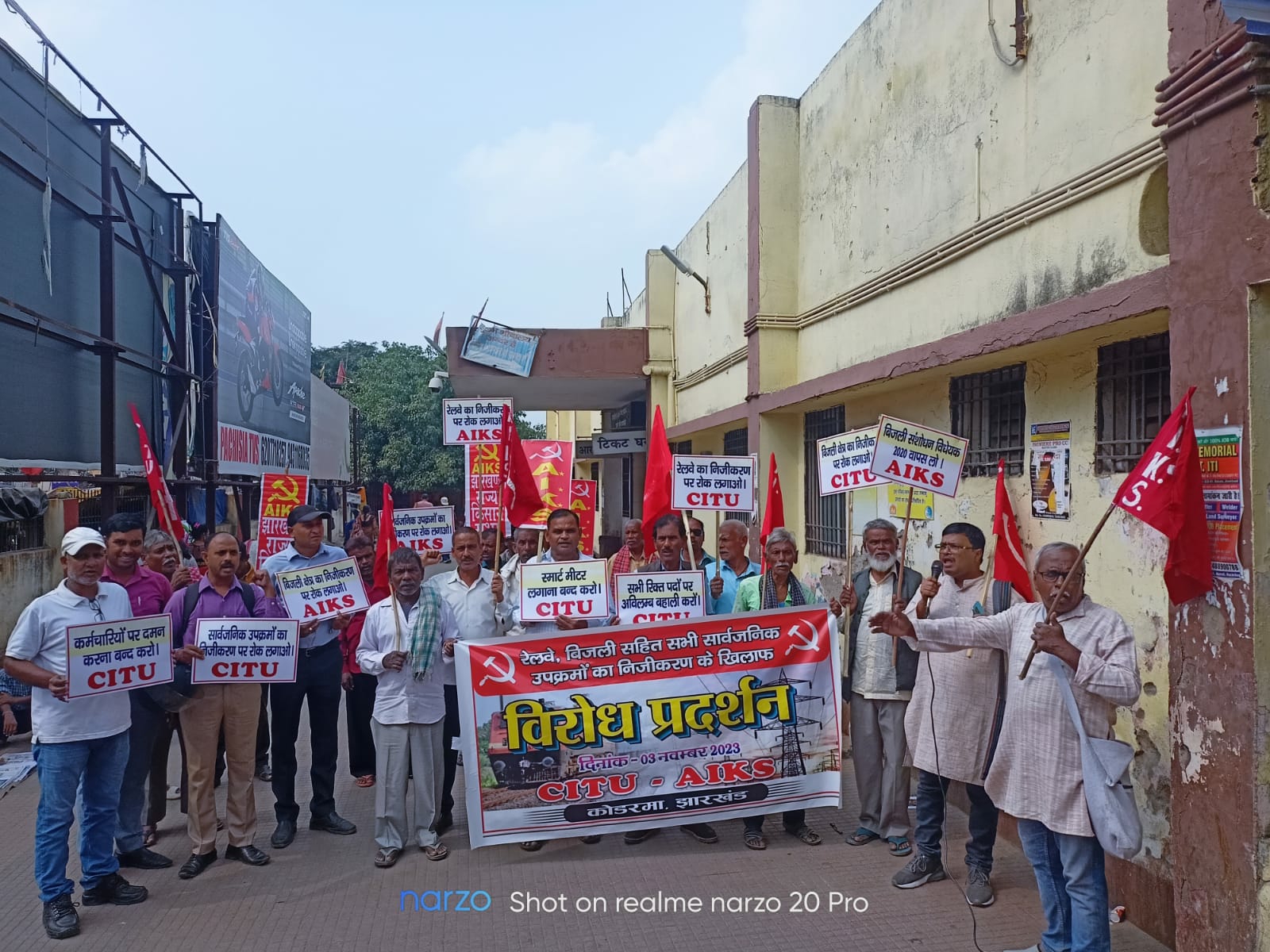 टीम एबीएन, झुमरीतिलैया। केंद्र सरकार के द्वारा रेलवे, बिजली सहित सभी सार्वजनिक उपक्रमों का निजीकरण तथा बिजली स्मार्ट मीटर लगाये जाने के खिलाफ देशव्यापी सार्वजनिक क्षेत्र बचाओ दिवस के तहत शुक्रवार को कोडरमा रेलवे स्टेशन के दक्षिण गेट पर सीटू और किसान सभा के बैनर तले विरोध प्रदर्शन किया गया।