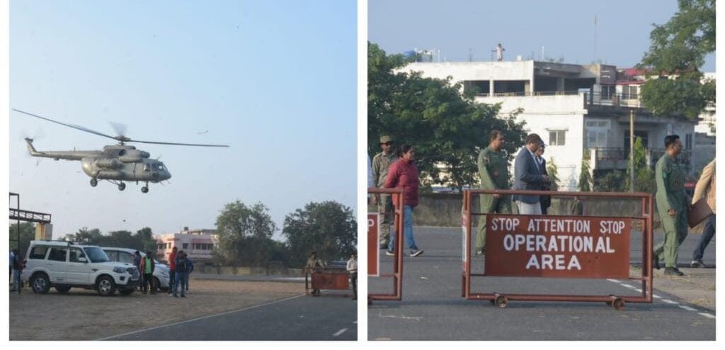 इसके बाद जिला प्रशासन ने वायु सेना के अधिकारियों के साथ हवाई अड्डे के सभाकक्ष में बैठक की। बैठक में हवाई अड्डे की सुरक्षा, हेलीकॉप्टर की सुरक्षित लैंडिंग, पार्किंग, चिकित्सकों की टीम, एंबुलेंस एवं टेक ऑफ इत्यादि को लेकर विस्तार से चर्चा की गयी।