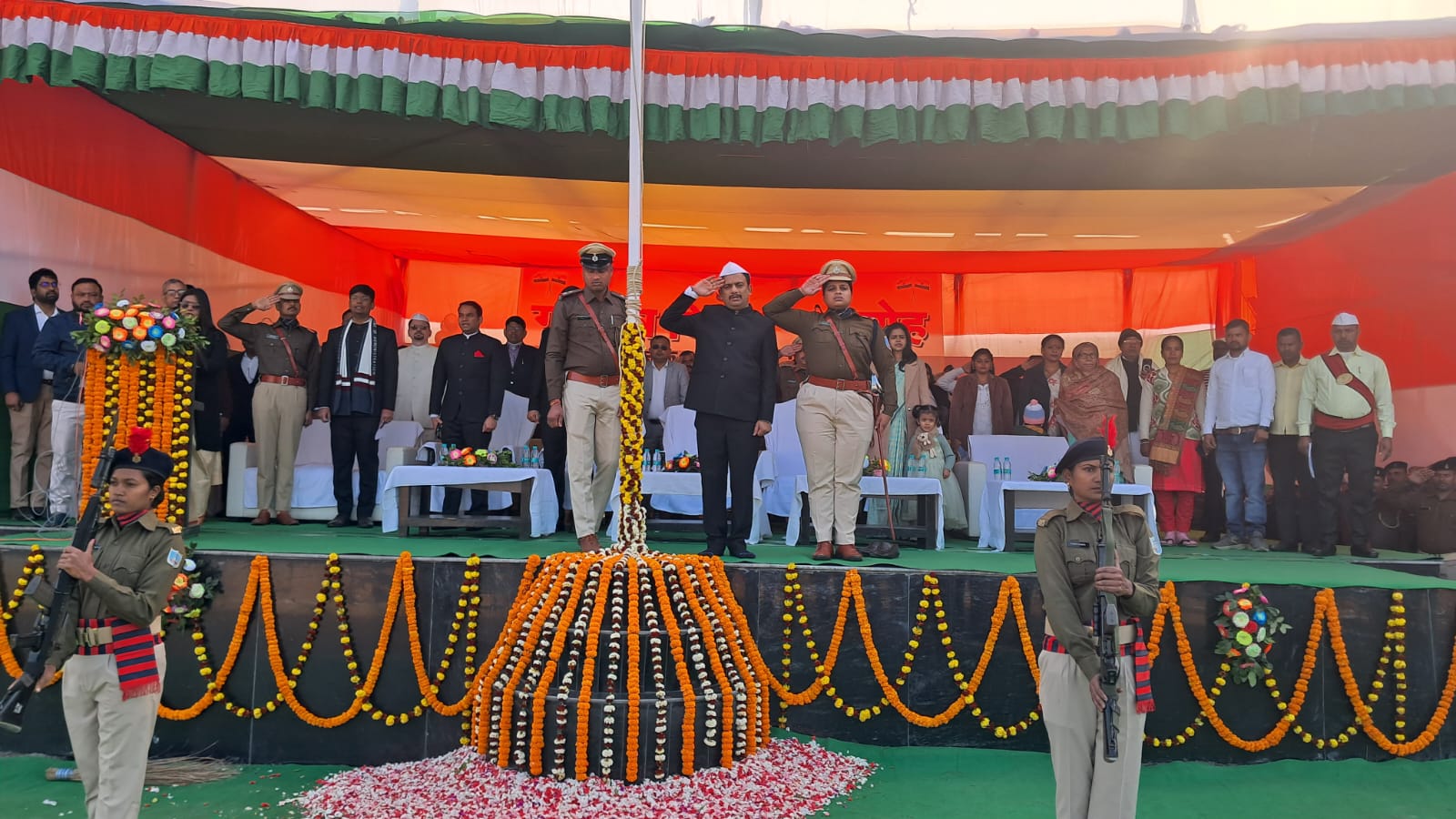 टीम एबीएन, टीम एबीएन, मेदिनीनगर (पलामू)। गणतंत्र दिवस के अवसर पर पलामू के स्थानीय पुलिस लाइन स्टेडियम में आयोजित मुख्य राजकीय समारोह में उपायुक्त शशि रंजन ने झंडोत्तोलन किया। इस अवसर पर उपायुक्त ने जिलेवासियों को गणतंत्र दिवस की शुभकामनाएं दी। साथ जिलेवासियों को संबोधित किया।