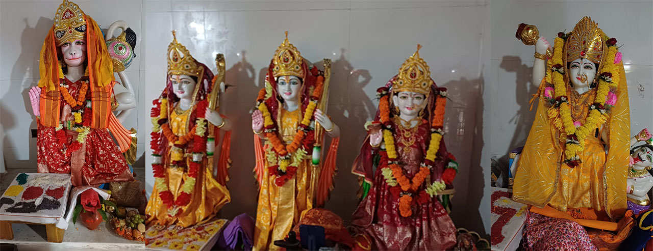 मूर्तियों में नर्मदेश्वर शिव लिंग, सिंदूरिया सिद्धि विनायक, पार्वती, कार्तिक काले ग्रेनाइट में, वरद हनुमान, कच्छप अवतार, सिंहवाहिनी दुर्गा, राजदरबार सफेद संगमरमर की आदमकद प्रतिमा की प्राण प्रतिष्ठा हुई। मंदिर के पुजारी पं. रामदेव पांडेय ने उक्त कार्यक्रम संपन्न कराया। जुमार नदी से जल यात्रा हुई। शाम को भंडारा संपन्न हुआ।