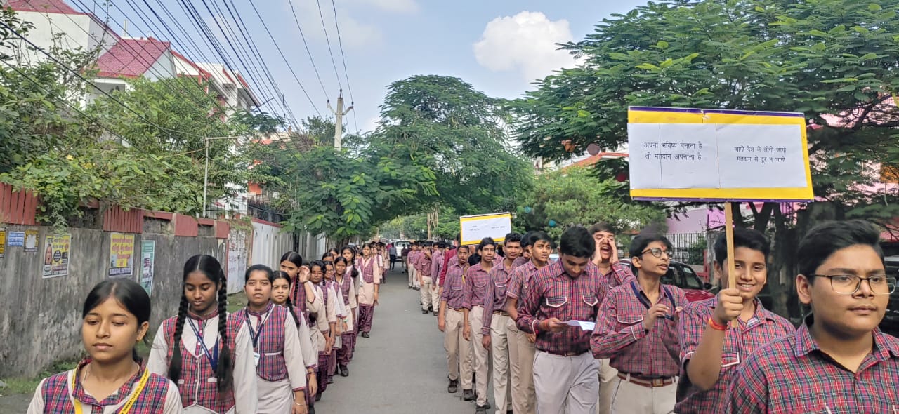 टीम एबीएन, रांची। डीएवी कपिल देव पब्लिक स्कूल कडरू रांची ने आज मतदाता जागरूकता रैली निकाली। छात्र छात्राओं शिक्षकों की यह रैली एजी कापरेटिव कालोनी में गई और लोगों से वोट देने की अपील की। बच्चों ने तख्तियों पर मतदान करने की अपील संबंधित नारे लिख रखे थे।