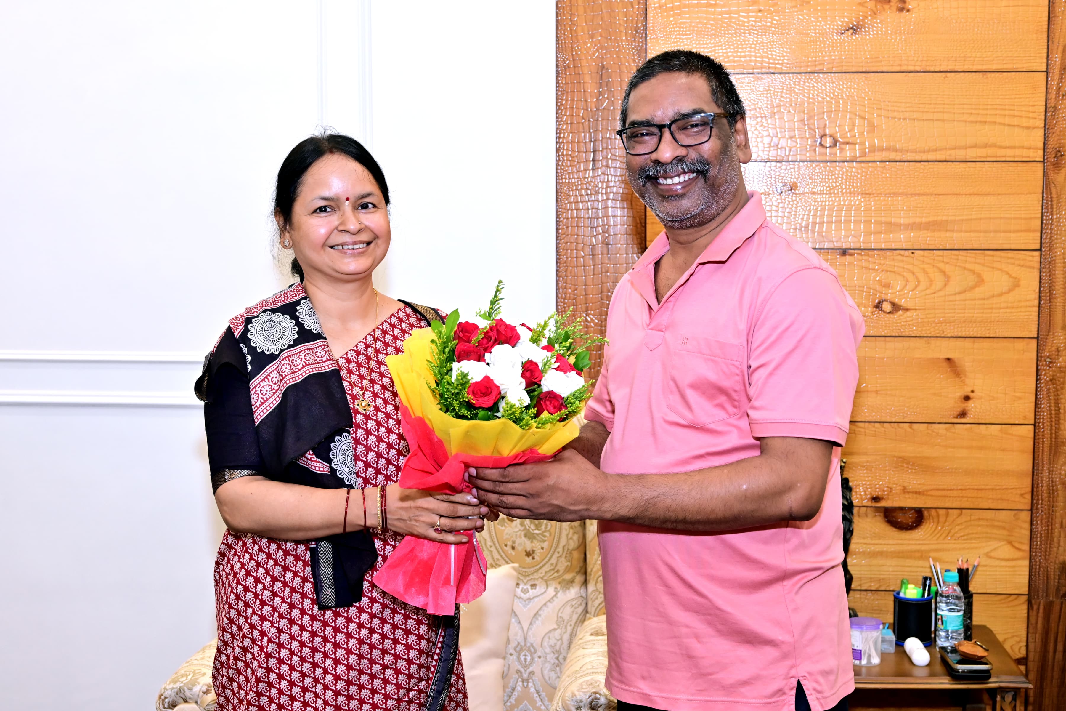 टीम एबीएन, रांची। मुख्यमंत्री हेमन्त सोरेन से आज कांके रोड रांची स्थित मुख्यमंत्री आवासीय कार्यालय में राज्य निर्वाचन आयुक्त झारखंड अलका तिवारी ने मुलाकात की। मुख्यमंत्री से यह उनकी शिष्टाचार भेंट थी।