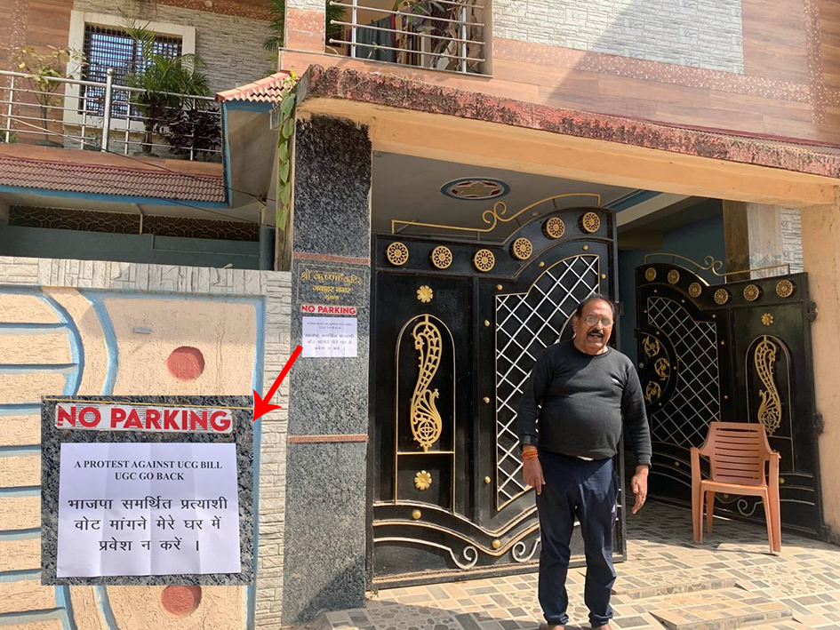 टीम एबीएन, रांची। यूनिवर्सिटी ग्रांट कमीशन के नये कानून को लेकर अब कट्टर भाजपाइयों में भी भाजपा के प्रति जबरदस्त आक्रोश देखने को मिल रहा है। गुमला जवाहर नगर में रहनेवाले भाजपा के एक कट्टर समर्थक द्वारिकानाथ मिश्रा इस काले कानून को लेकर इतने आहत हुए हैं कि अपने घर के दरवाजे पर नगर परिषद के आसन्न चुनाव में किसी भी भाजपा समर्थित उम्मीदवारों को घर में प्रवेश करने पर रोक लगा दी है। इसके लिए इन्होंने बाकायदा दरवाजे पर एक पोस्टर चिपका दिया है।