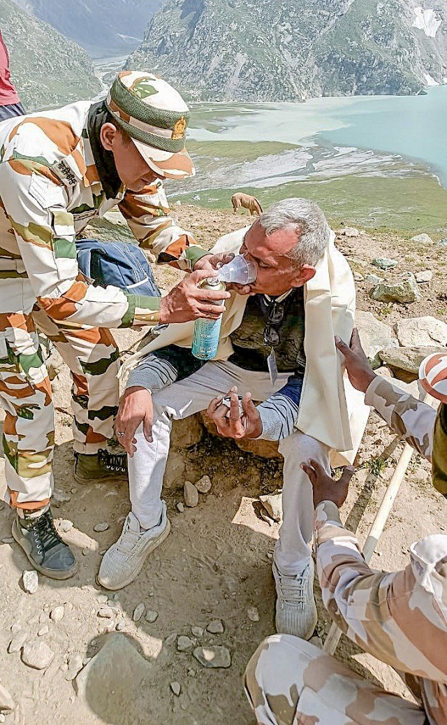 एबीएन सोशल डेस्क। पवित्र श्री अमरनाथ यात्रा के लिए 8,700 से अधिक तीर्थयात्रियों का पांचवां जत्था रविवार को आधार शिविर से दक्षिण कश्मीर हिमालय में स्थित अमरनाथ तीर्थस्थल के लिए रवाना हो गया। इसी बीच अमरनाथ यात्रा के मार्ग से भारत-तिब्बत सीमा पुलिस ( ITBP) के जवानों की तस्वीरें सामने आई हैं जो जरूरतमंद तीर्थयात्रियों की मदद में जुटे हुए हैं। यात्रा मार्ग पर अगर किसी तीर्थयात्री की हालत खराब हो रही है तो उन्हें ऑक्सीजन भी दे रहे है। सामने आईं तस्वीरों में ITBP के जवान बुजुर्गों को पानी पिला रहे है और जिन लोगों को चढ़ने में दिक्कत आ रही है, उन्हें कंधे का सहारा देकर उनके स्थान तक ले जा रहे हैं। यही नहीं जवान घायलों को अस्पताल भी ले जाते हुए दिखाई दे रहे हैं। इसके साथ जिन लोगों को मामूली चोटें आई हैं, उनका वे प्राथमिक उपचार भी कर रहे हैं। एक खबर के मुताबिक 2 जुलाई तक इन ITBP के जवानों ने अबतक 50 से अधिक लोगों को ऑक्सीजन की सेवा दी। अमरनाथ यात्रा के लिए 8,700 से अधिक तीर्थयात्रियों का पांचवां जत्था रविवार को यहां आधार शिविर से दक्षिण कश्मीर हिमालय में स्थित अमरनाथ तीर्थस्थल के लिए रवाना हो गया। अधिकारियों ने बताया कि तीर्थयात्री 326 वाहनों के काफिले में यहां भगवती नगर यात्री निवास से रवाना हुए। उन्होंने कहा कि बालटाल जाने वाले 2,618 तीर्थयात्री सबसे पहले भगवती नगर शिविर से 121 वाहनों में तड़के साढ़े तीन बजे रवाना हुए, इसके बाद 205 वाहनों से 6,155 तीर्थयात्रियों का दूसरा काफिला पहलगाम के लिए रवाना हुआ। वार्षिक 43-दिवसीय अमरनाथ यात्रा 30 जून को दोनों आधार शिविरों-दक्षिण कश्मीर के अनंतनाग में 48 किलोमीटर के नुनवान-पहलगाम मार्ग और मध्य कश्मीर के गांदरबल में 14 किलोमीटर के बालटाल मार्ग से शुरू हुई। अधिकारियों ने बताया कि सुबह 9 बजे तक 39,000 से अधिक तीर्थयात्रियों ने गुफा में प्राकृतिक रूप से निर्मित बर्फ के शिवलिंग की पूजा अर्चना की। अधिकारियों ने कहा कि पहलगाम के लिए रवाना हुए 6,155 तीर्थयात्रियों में 1,924 महिलाएं, 12 बच्चे और दो ट्रांसजेंडर हैं, जबकि बालटाल जाने वाले समूह में 709 महिलाएं शामिल हैं। इसके साथ, 29 जून से घाटी के लिए भगवती नगर आधार शिविर से कुल 31,987 तीर्थयात्री रवाना हुए हैं। इसी दिन उपराज्यपाल मनोज सिन्हा ने तीर्थयात्रियों के पहले जत्थे को हरी झंडी दिखाई थी। यात्रा 11 अगस्त को रक्षा बंधन के अवसर पर समाप्त होगी।