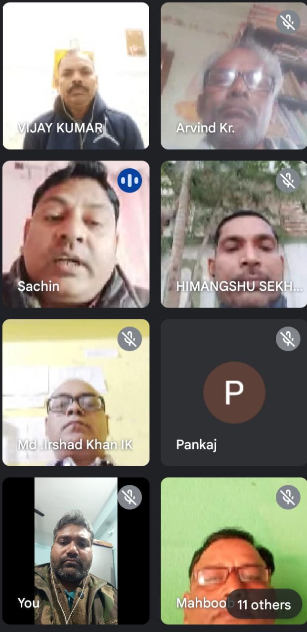 इस ऑनलाइन बैठक में रांची विश्वविद्यालय से डॉ दीपक प्रसाद, रिमझिम तिर्की, डॉ मंजू कुमारी, प्रो सुजाता मजूमदार, डॉ सचिन कुमार, श्यामा प्रसाद मुखर्जी विश्वविद्यालय रांची से डॉ अरविन्द कुमार मौर्या, विभावि हजारीबाग से डॉ शमशाद आलम, डॉ अनिमा लकड़ा, नंद किशोर सिंह, डॉ अरुणिमा सिंह, प्रो अभय दास, डॉ पंकज कुमार, विनोद बिहारी महतो कोयलांचल विश्वविद्यालय धनबाद से डॉ विजय कुमार विश्वकर्मा, डॉ राकेश कुमार, प्रो कल्याणी कुमारी, डॉ धर्मेंद्र कुमार वर्मा सिद्दो-कान्हू मुर्मू विश्वविद्यालय दुमका से प्रो महबूब आलम, प्रो बासुकी नाथ झा, डॉ मनोहर कुमार, प्रो हिमांशु शेखर महाकुर, डॉ अभय सिंह, प्रो उमा सिंह कोल्हान विश्वविद्यालय से प्रो गोपाल दास, डॉ इरशाद खान, प्रो जोशी किंडो, नीलांबर पीतांबर विश्वविद्यालय से डॉ सुरेंद्र कुमार सहित सैकड़ों बीएड के अनुबंध पर कार्यरत सहायक प्राध्यापकों ने राज्य में अनुबंधकर्मियों की सेवा नियमितीकरण और स्थायीकरण के लिए माननीय मुख्यमंत्री श्री हेमन्त सोरेन को हृदय से आभार व्यक्त करते हुए कहा कि सरकार के आदेश से ही हम सभी की नियुक्ति अनुबंध पर विश्वविद्यालय ने की है और हमलोग भी लंबे समय से लगातार अपनी सेवा देते आ रहे हैं और अब दूसरे नौकरी में आवेदन की उम्र भी खत्म हो चुकी है इसलिए बीएड शिक्षकों की सेवा स्थायी करते हुए पूर्ण वेतनमान दिया जाये।