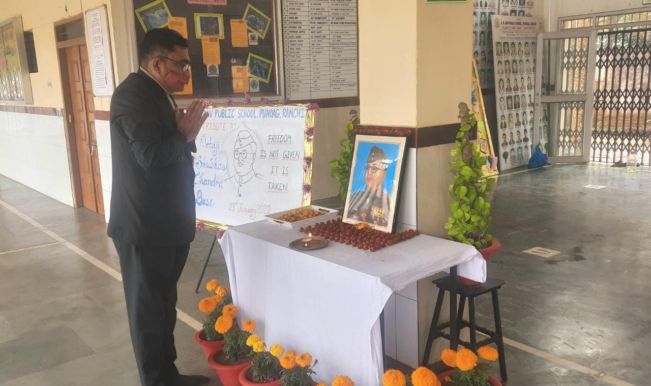 टीम एबीएन, रांची। एसआर डीएवी पब्लिक स्कूल, पुंदाग में नेताजी सुभाष चंद्र बोस की जयंती पर उन्हें याद किया गया। सनद रहे कि डीएवी विद्यालयों में दो दिवसीय शिक्षण संवर्द्धन कार्यशाला आयोजित की गई है। आज दो दिवसीय कार्यशाला के अंतिम दिन के कार्यक्रमों का शुभारंभ नेताजी को भावांजलि अर्पित करके किया गया। यह कार्यशाला ऑनलाइन आयोजित की गई है। इस अवसर पर शिक्षकों ने देश के स्वाधीनता संग्राम में नेताजी की भूमिका को अभूतपूर्व बताया। प्राचार्य श्री संजय कुमार मिश्रा ने नेता जी को श्रद्धा सुमन अर्पित करते हुए कहा कि नेताजी प्रखर व्यक्तित्व के स्वामी थे। उन्होंने अपनी मेधा के बल पर अंग्रेज़ी हुकूमत को लोहे के चने चबवा दिए। लाख कोशिश के बाद भी वे अंग्रेजों के हाथ नहीं आएं और उन्होंने आज़ाद हिन्द फौज का गठन करके आज़ादी के संघर्ष को जारी रखा।उन्होंने "दिल्ली चलो" तथा "जय हिंद" का नारा दिया,जो आज भी सबमें नई ऊर्जा का संचार करता है।नेताजी अमर रहेंगे।विद्यालय में उपस्थित सभी शिक्षक और शिक्षिकाओं ने भी नेता जी को पुष्पांजलि अर्पित किया।
